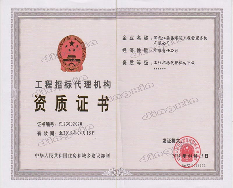 黑龍江鼎鑫建筑工程管理咨詢有限公司成立于2005年,注冊資金400萬元。具備中華人民共和國住房和城鄉(xiāng)建設(shè)部批準(zhǔn)的工程招標(biāo)代理機構(gòu)資格、中華人民共和國財政部批準(zhǔn)的政府采購招標(biāo)代理機構(gòu)資格、黑龍江省商務(wù)廳批準(zhǔn)的機電產(chǎn)品國際招標(biāo)代理機構(gòu)資格、中華人民共和國住房和城鄉(xiāng)建設(shè)部批準(zhǔn)的工程造價咨詢甲級資質(zhì)、黑龍江省住房和城鄉(xiāng)建設(shè)廳批準(zhǔn)的房屋建筑工程監(jiān)理乙級(市政公用工程監(jiān)理乙級資質(zhì))。主要從事建設(shè)工程及政府采購招標(biāo)、造價咨詢、工程監(jiān)理、項目管理等業(yè)務(wù)。