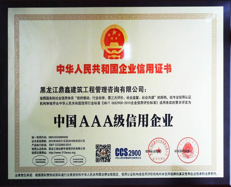 • 中國AAA級信用企業(yè)證書